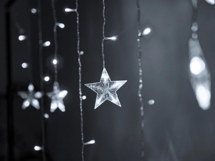 Ta božična LED zavesa spremeni okna, stene in niše v pravljično dekoracijo. Hladno bela barva svetlobe poudari moderne interierje in jim doda eleganten zimski pridih – idealno za praznične trenutke, fotografiranje in večerni počitek.