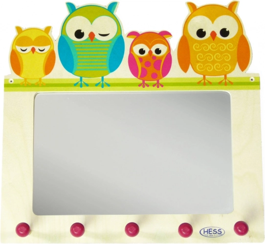 Ta barvit obešalnik, okrašen z motivom sovoje družine, bo polepšal vsako otroško sobo ali hodnik. Opremljen je s petimi kljukami, ki nudijo dovolj prostora za obešanje različnih oblačil in dodatkov. Ogledalo iz nezlomljivega pleksistekla je varno in praktično.