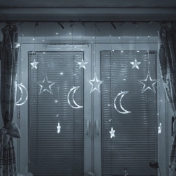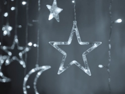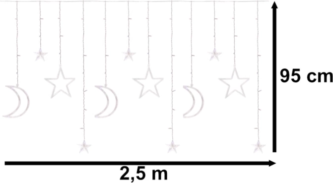 Velikodušna širina 2,5 m in motivi lun in zvezd spremenijo vsako okno ali steno v prijetno svetlobno sceno. Hladno bela barva poudari zimsko razpoloženje in v prostor vnese čist, moderen videz.