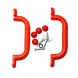 Praktični plastični ročaji v rdeči barvi za varnejšo igro na otroškem igrišču. Ponujajo nosilnost 100 kg, trden in odporen material ter enostavno montažo – vijaki in imbus ključ v paketu.