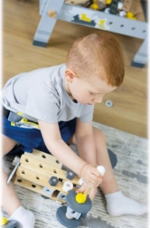 Otroci vadijo fino motoriko, koordinacijo oko-roka in prostorsko predstavljivost pri povezovanju letev, plošč, koles in kock v lastne stvaritve.