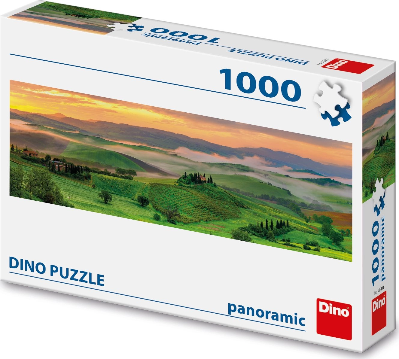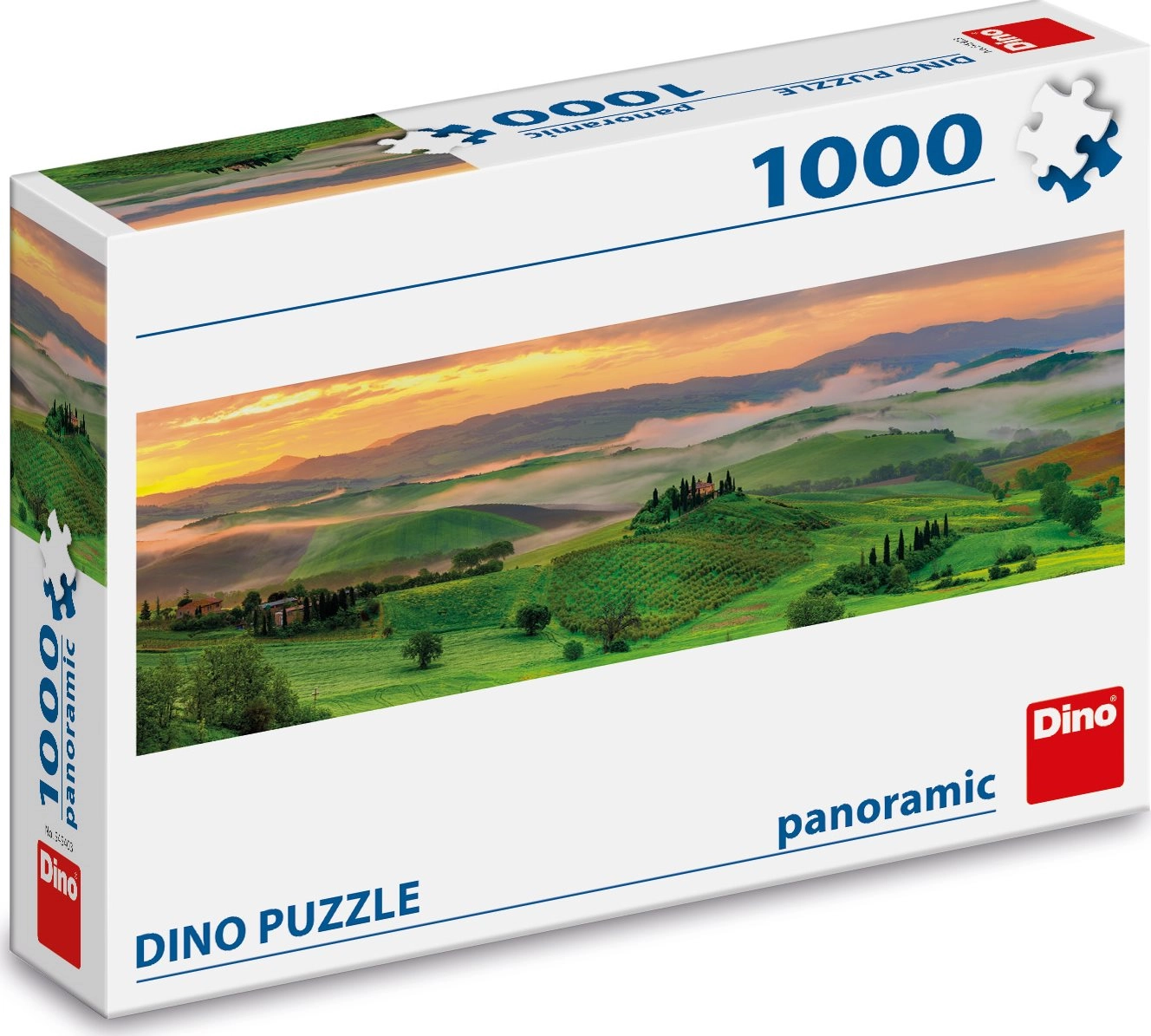 Panoramske sestavljanke DINO z motivom čarobnega sončnega zahoda nad zeleno pokrajino ponujajo mirno vzdušje in osredotočeno ustvarjanje. Zaradi natančnega izreza in čvrstega kartona koščki odlično pristajajo, končna slika velikosti 96 × 32 cm pa kar vabi k podlaganju in uokvirjanju.