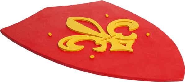 Izrazita rdeča barva in rumena lilija ščitu dodajata srednjeveški šarm. Odlično se poda h kostumom ali kot dekoracija v otroški sobi.