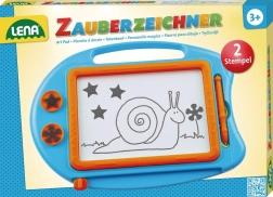 Magnetna risalna tablica LENA je odlična igrača za male umetnike. Otroci lahko pišejo, rišejo in žigosajo vedno znova – brez nereda in brez papirja. Priloženo pisalo je trdno pritrjeno z vrvico, zato se ne izgubi, drsna letvica pa hitro izbriše sliko.