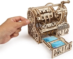 Ta model blagajne od Ugears predstavlja natančno izdelan lesen mehanski model, ki je navdihnjen z retro dizajnom. Z sestavljanjem te blagajne pridobite ne samo lep dodatek, temveč tudi praktičen prostor za shranjevanje kovancev in bankovcev.