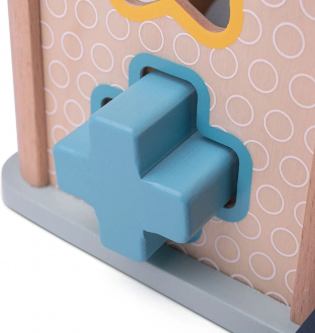 Ta motorna kocka je čudovita igrača za majhne otroke, ki pomaga razvijati njihovo spretnost in koordinacijo. Barvne kocke preprosto spadajo v prave odprtine in urijo otroško logično razmišljanje. Pastelne barve in naravni les zagotavljajo, da je igrača primerna za fante in deklice.