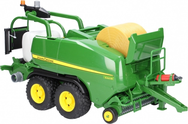 Podroben model stiskalnice za bale z verodostojnimi elementi in delujočim vrtljivim pobiralnikom ponuja resničen občutek dela na polju ter spodbuja poučno igro.