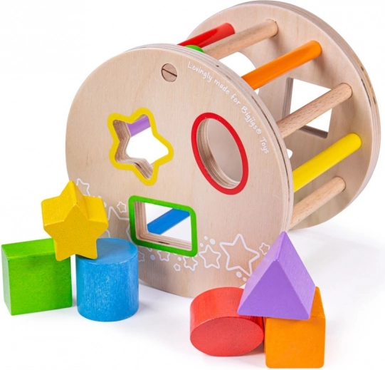 Ta leseni valj z oblikami je odlična izbira za prvo izobraževalno igračo. Barvni geometrijski koščki se vstavljajo v ustrezne odprtine, s čimer otroci vadijo logično razmišljanje, potrpežljivost in natančnost prijema. Pri valjanju po tleh igrača oddaja prijetne klopotajoče zvoke, ki motivirajo k nadaljnjemu raziskovanju.
