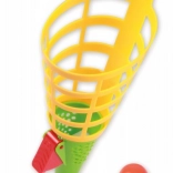 Zabavna mini igra za enega igralca, ki razvija gibalno koordinacijo in refleks. S košarico z izstrelitvenim mehanizmom izstrelite žogico v zrak in jo poskusite znova ujeti. Lahka, trpežna in idealna za doma ter na poti.