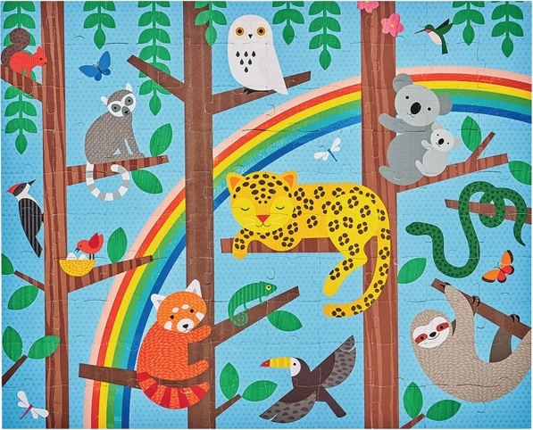 Ta kakovostna otroška sestavljanka ponuja kar dva edinstvena motiva s prijaznimi džungelskimi živalmi. S 49 kosi je idealna za otroke od 5 let, ki bodo pri sestavljanju urili koncentracijo in opazovanje podrobnosti. Priročno potovalno pakiranje omogoča, da vzamete zabavo vedno s seboj.