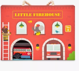 Ta ustvarjalni igralni set Little Firehouse bo navdušil vse male reševalce. Obojestranska kartonska gasilska postaja, leseni navijalni avtomobilček ter komplet prog in dodatkov ustvarjajo realistično okolje za napete igralne scenarije. Dele preprosto sestavite in v trenutku je pripravljeno na akcijo.
