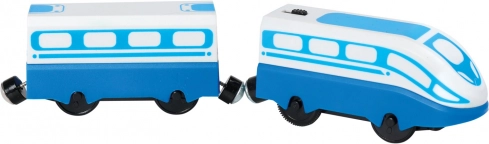 Ta visokohitrostna električna lokomotiva z vagončkom je idealen dodatek vsaki leseni železnici. Zaradi kompaktnih mer, enostavnega upravljanja in magnetne povezave z vagončkom bo otrokom zagotavljala ure zabave ter hkrati razvijala fino motoriko in domišljijo.