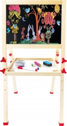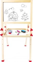 Ta kakovostna otroška tabla združuje belo magnetno površino za pripenjanje slik in pisanje s flomastrom s klasično skrilasto tablo za risanje s kredo. Zahvaljujoč nastavljivi višini in stabilni leseni konstrukciji raste z otrokom in je odlična za otroško sobo ali igralnico.