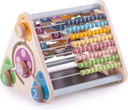 Ta kakovosten leseni aktivni trikotnik prinaša otrokom ure smiselne zabave. Zaradi stabilne konstrukcije in premišljene zasnove brez majhnih delov je idealen za igro doma in v vrtcih. Otroci na igriv način vadijo štetje, prepoznavanje črk in živali, koordinacijo oko–roka ter ustvarjalnost na kredni tabli.