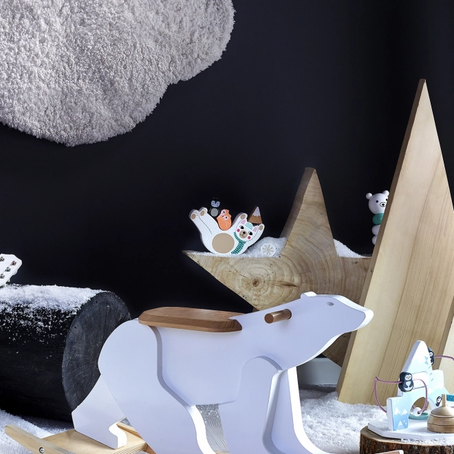 Set vsebuje osnovo medvedka, 12 igralnih koščkov in kocko z barvami. Vse je iz kakovostnega lesa s poetičnimi ilustracijami Michelle Carlslund. Zaradi kompaktnih mer je idealen kot potovalna igra in čudovita oblikovalska igrača za otroško sobo.