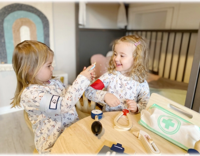 Od stetoskopa prek termometra z nastavljivo temperaturo pa do merilnika krvnega tlaka z manšeto in balončkom – otroci imajo pri roki vse, kar potrebujejo za majhen pregled.