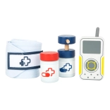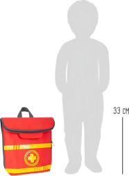 Ta reševalni nahrbtnik je idealen za otroško igro zdravnika. V notranjosti boste našli lesena orodja, kot so stetoskop, termometer, otoskop z lupo in celo defibrilator. Otroci se lahko naučijo prepoznavati medicinsko opremo in simulirati reševalne postopke.