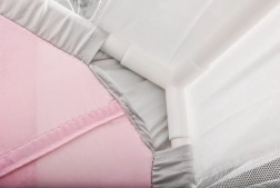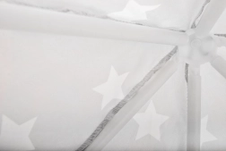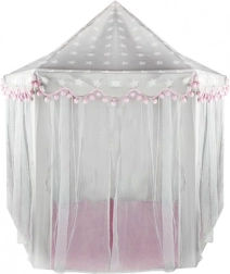 Ustvarite otrokom varen kotiček za počitek in domišljijske igre. Šotor ima stožčasto streho, 6 odprtih vhodov s svetlimi, zračnimi zavesicami in elegantno sivo‑rožnato zasnovo z zvezdicami, ki se lepo poda v otroško sobo ali igralni kotiček. Zahvaljujoč lahki konstrukciji na klik ga sestavite v hipu ter enako preprosto prenesete ali pospravite.