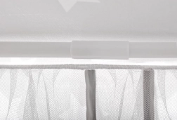 Šest vhodov s svetlimi, polprosojnimi zavesicami lahko zavežete v pentlje. Otroci imajo dovolj svetlobe, zraka in občutka varnosti.