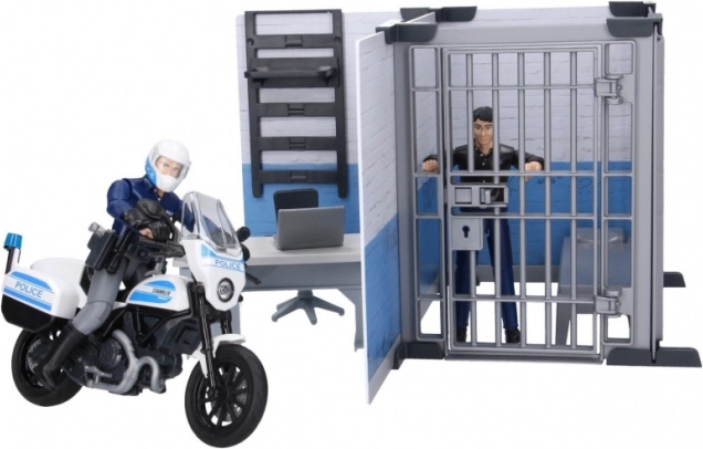 Ta policijska postaja BWORLD Bruder ponuja čudovito priložnost za otroke, da ustvarijo svoje lastne zgodbe in situacije. Policijska postaja služi kot koordinacijski center s pisarniškim delom, kjer lahko policist spremlja in vodi misije. Postaja vsebuje: