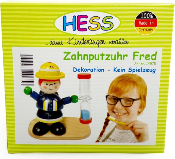 Ta barvita lesena igrača v obliki figure, ki jo drži gasilec, je ne le dekorativna, temveč tudi funkcionalna. Uro lahko uporabite kot izviren časomer s peskom modre barve, kot igriv dodatek v otroški sobi. Ura z dvominutnim pretakanjem je idealna za spodbudo pri ščetkanju zob.