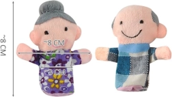 Prisrčen set naprstnih lutk predstavlja celotno družino: mamico, očeta, sina, hčerko, babico in dedka. Zahvaljujoč mehki plišasti tkanini, živahnim barvam in lahki zasnovi odlično pristajajo na otroške prstke ter spodbujajo kreativnost, pripovedovanje in fino motoriko. Kompaktna velikost zagotavlja preprosto shranjevanje in prenašanje.