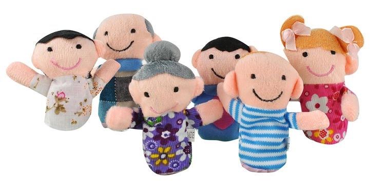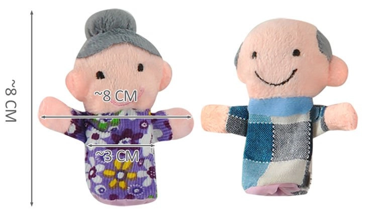 Šest lutk – mamica, oče, sin, hči, babica in dedek – omogoča razvijanje zgodbe, vlog ter sodelovanja med otroki.