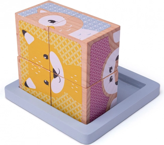 Te lesene kocke Bigjigs Baby omogočajo ustvariti šest različnih motivov gozdnih živali.