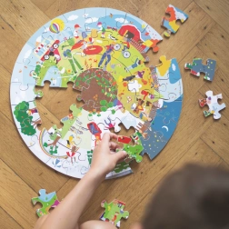 Otroški okrogli talni puzzle podjetja Bigjigs Toys prinašajo edinstven način, kako se otroci lahko spoznajo s sezonskimi spremembami. Vsak kos puzzla je natančno zasnovan, da ustvari celovito 360-stopinjsko sceno, ki predstavlja različne aktivnosti in pokrajine, značilne za pomlad, poletje, jesen in zimo.
