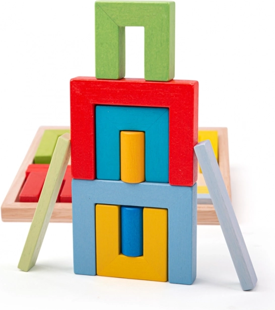 Pametni leseni sestavljivi liki za male graditelje od 3 let. Odprta igra s pisanimi deli iz kakovostnega lesa razvija fino motoriko, prostorsko zaznavanje in prepoznavanje barv. Izdelano iz varnih materialov, ki izpolnjujejo evropske varnostne standarde.