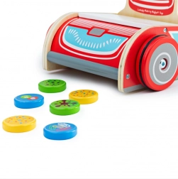 Skriti magnet na spodnji strani sesalnika ujame barvne lesene diske, zato imajo otroci takojšnjo povratno informacijo in igro, ki res deluje.