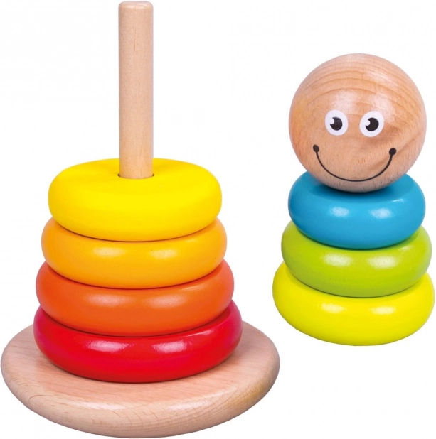 Klasična lesena igrača za najmlajše, ki razvija fino motoriko, koordinacijo oko–roka in prepoznavanje barv. Barvni obročki se zlahka natikajo na leseno palico, vesela glavica pa poskrbi za zabavno igro. Izdelano iz kakovostnega lesa, izdelek izpolnjuje evropske varnostne standarde in je idealen za otroke od 18 mesecev naprej.