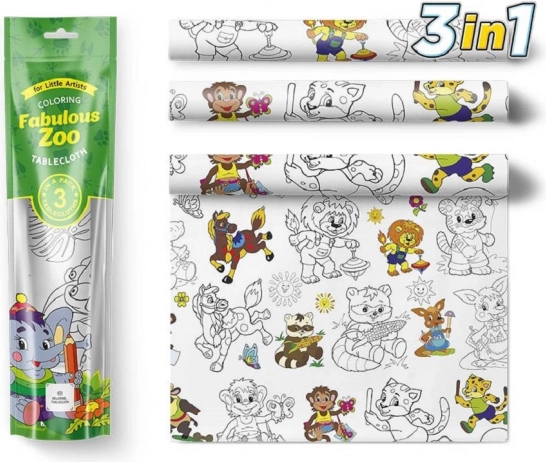 Vsak prt je mogoče preprosto razdeliti na tri dele, kar spodbuja sodelovanje in deljenje med več otroki. Barvanje otroke spodbuja k ustvarjalnosti, izboljšuje koncentracijo in fino motoriko. Prt je primeren tako za otroške zabave kot tudi kot običajen prt za mizo.