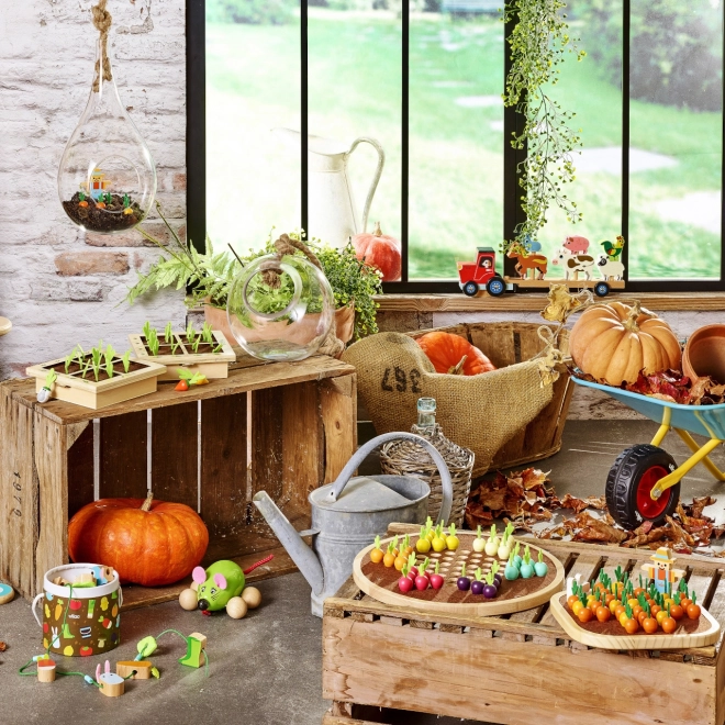 Trdna lesena podlaga ter korenčki iz lesa in filca zagotavljajo vzdržljivost in čudovit naraven videz, ki otroke vabi k igri.