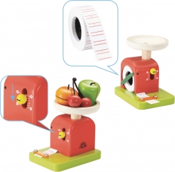 Trdna konstrukcija iz masivnega lesa in kakovosten lak v živahnih barvah zagotavljata dolgo življenjsko dobo in varno uporabo. Igrača podpira razvoj fine motorike, logičnega mišljenja in domišljije med igro trgovinice, kuhinje ali tržnice.