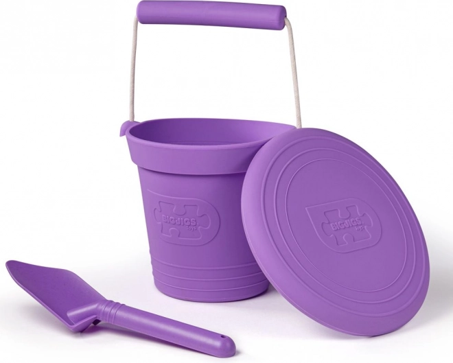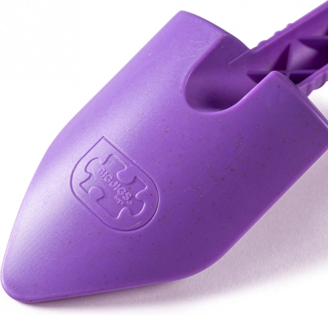 Privlačna vijolična barva in logotip na ročaju dajeta lopatki sodoben videz, primeren za otroke.