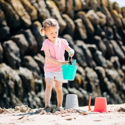 Spodbuja odprto igro: otroci lahko gradijo peščene gradove, prenašajo vodo, pomagajo na vrtu ali se igrajo ob vodi. Vedro je lahko prenosljivo in gre v kovček, nahrbtnik ali nakupovalno torbo, zato ga lahko vzamete kamor koli.