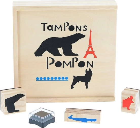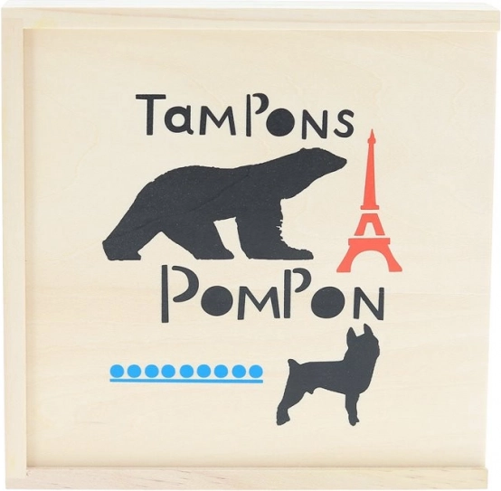Leseni žigi POMPON TOYS – ustvarjalni set 23 kosov z blazinicami za črnilo