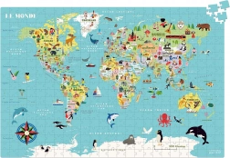 Stilski in kakovostni kartonasti puzzle z zemljevidom sveta razvijajo potrpežljivost, zbranost in geografsko znanje. Ilustracije švedske umetnice Ingele P. Arrhenius odlikujejo retro estetika, izrazita tipografija in igrive barve, ki vsako sestavljanje spremenijo v zabavno potovanje okoli sveta.