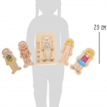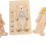 Lesene slojevite puzzle anatomije so idealna izobraževalna igrača za otroke od 3 let naprej. S štirimi zaporednimi plastmi se otroci naučijo, kako je zgrajeno človeško telo – od skeleta, prek organov in mišic do oblačil. Vsaka plast je sestavljena iz 7 koščkov, ki natančno prilegajo drug k drugemu in motivirajo k ponovnemu sestavljanju.