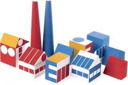 Sestavljanka izhaja iz originalnega koncepta »Factory Town« iz leta 1921. Žive barve in čiste oblike spodbujajo otroško domišljijo in razvijajo estetsko zaznavanje.