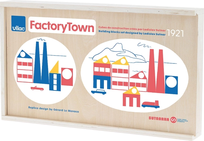 Vilac v sodelovanju z umetnikom Gérardom Lo Monacom ter Fakulteto za dizajn in umetnost Ladislava Sutnarja ponovno predstavlja legendarni »Factory Town« v sodobni podobi. Komplet je idealen za otroke od 2 let dalje ter kot izobraževalni in oblikovalski dodatek otroški sobi.