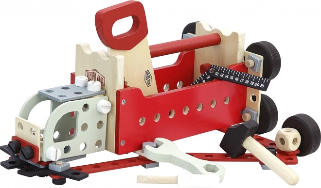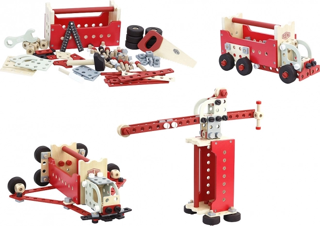 Iščete igračo, ki bo razvijala motorične veščine in ustvarjalno razmišljanje vaših otrok? Dvostranski kovček z orodjem Vilac je prava izbira! Ta set vsebuje kar 96 delov, ki omogočajo sestavljanje modularnih konstrukcij, kot so tovorni avto, žerjav ali celo robot. Oblikovanje ateljeja Vilac zagotavlja kakovostno izdelavo in privlačen vintage videz. Otroci se bodo lahko preizkusili v vlogi malega mojstra in popestrili svoje igralno kraljestvo.
