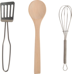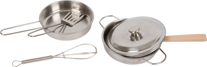 Vsebuje lonec s pokrovom, ponev, metlico, lopatko in leseno kuhalnico, ki pomagajo pri igri kuhanja.