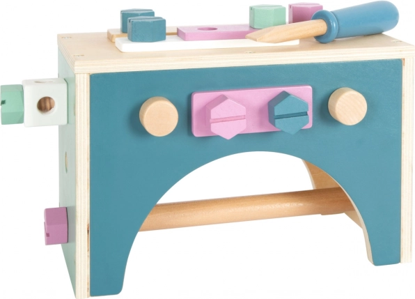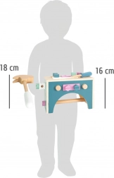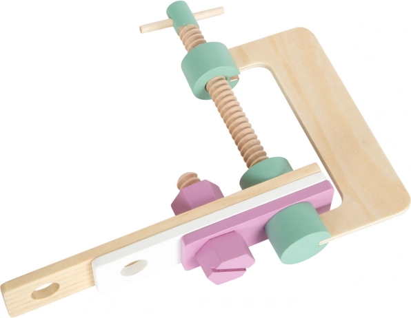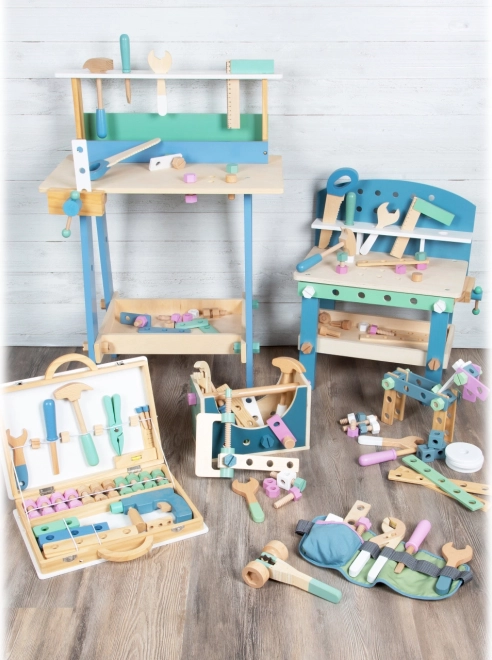 Ta lesena škatla z orodjem je idealna za otroke, ki želijo posnemati prave popravke in obrtniška dela. Preprost skandinavski dizajn v nežnih pastelnih barvah se odlično poda v vsak otroški prostor: