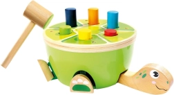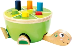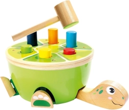 Zabavno leseno tolkalo v obliki želve, ki razvija otrokovo fine motorične spretnosti, koordinacijo oko–roka in zbranost. Barvne klinčke se zabija v oklep s pomočjo kladivca s filc površino za tišjo igro, pri čemer »oživijo« želvine noge in glava – odličen način za spodbujanje radovednosti in veselja ob odkrivanju.