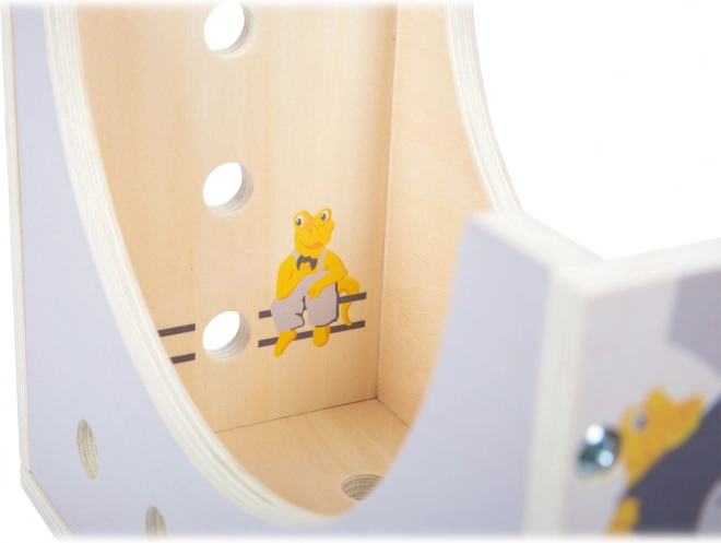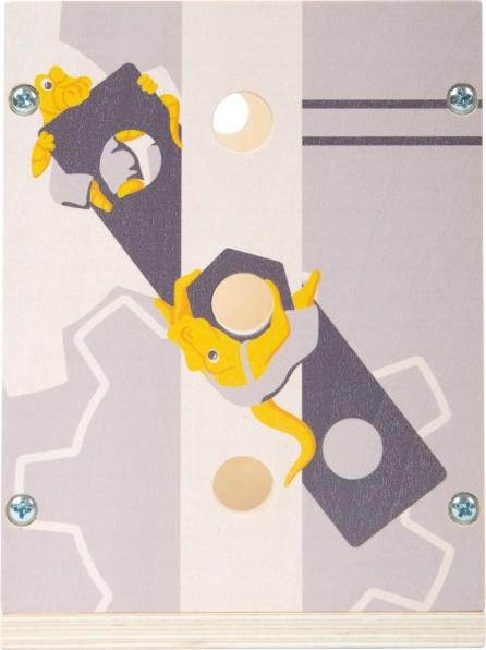 Odkrijte pametno igračo 2v1: po obrnitvi se škatla spremeni v delovno ploščo, na kateri lahko mali mojstri vijakajo, zategujejo in gradijo. Naravni les v kombinaciji z rumenimi in sivimi poudarki prinaša brezčasen videz in dolgo življenjsko dobo.