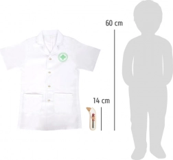 Otroški zdravniški set small foot prinaša vse, kar mali zdravniki potrebujejo za svojo prvo ordinacijo. Plašč v velikosti 110 je primeren za otroke visoke 105–110 cm, zahvaljujoč zapenjanju na pritiskače pa se zlahka oblači in slači. Leseni pripomočki so prijetni na dotik, trpežni in varni za otroško igro.