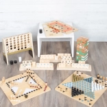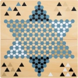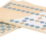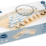 Dvostranska igralna plošča je sestavljena iz dveh delov, ki trdno držita skupaj zaradi magnetov. Kakovostne lesene figure lepo sedejo v roko, vzdržljiva kartonska škatla pa omogoča enostavno shranjevanje in prenašanje. Igra je idealna za družine in prijatelje, spodbuja logiko, načrtovanje potez in potrpežljivost.