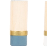 Zlati detajli v kombinaciji z dimno modro, črno, belo in naravnim lesom dajejo igri brezčasen videz in dekorativno vrednost.